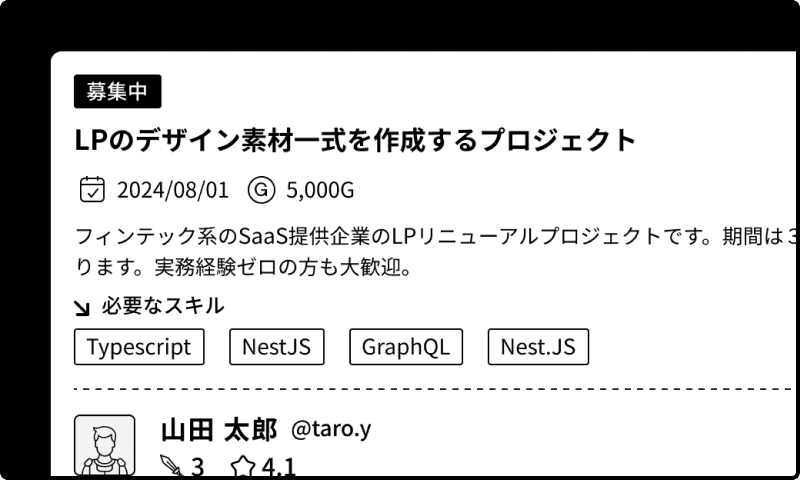 優秀な副業希望者、フリーランス、学生、元社員などの方と直接つながりが持てます。